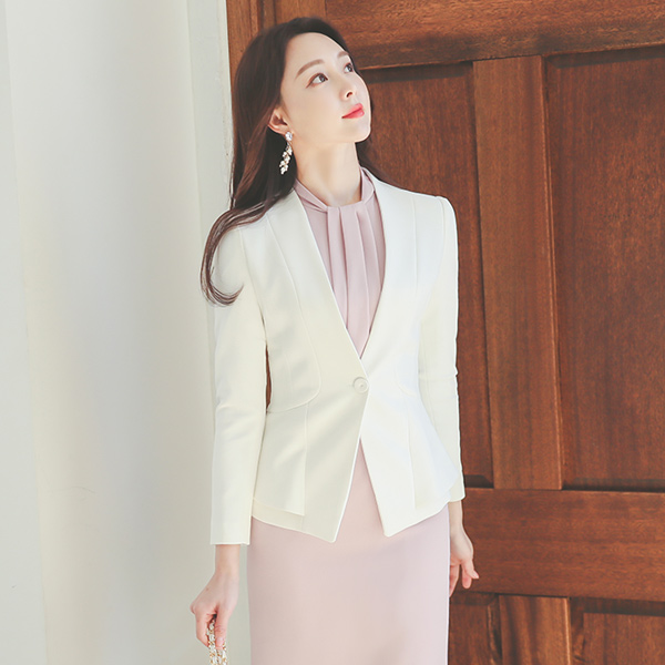 ノーカラー 切開ライン 二重ペプラム ジャケット