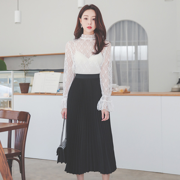 プリルネック ワイド カフス レイス ブラウス