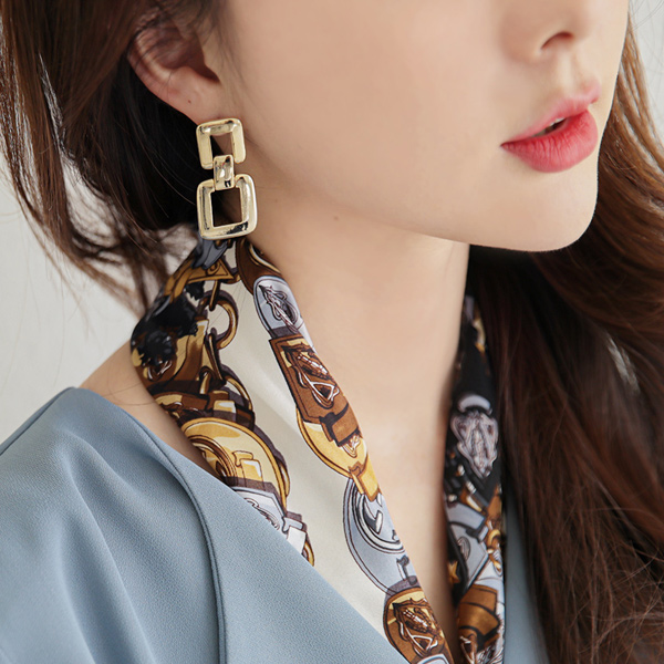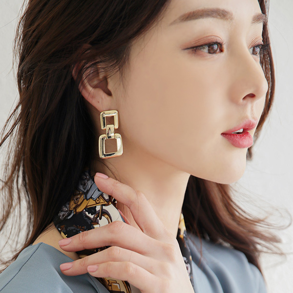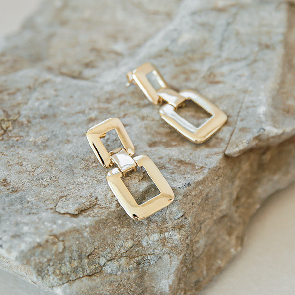 ダブル スクエア ドロップ イヤリング