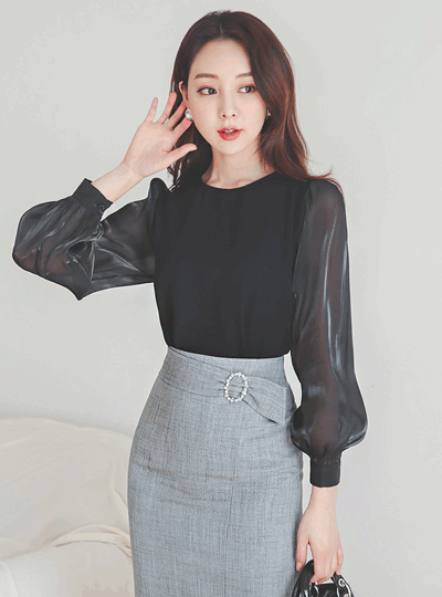 グラム ラウンド シースルー 袖 ブラウス