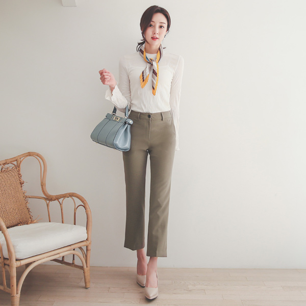 リンクル コール天 ワイドカフス コットンスパンデックス ラウンド ティーシャツ