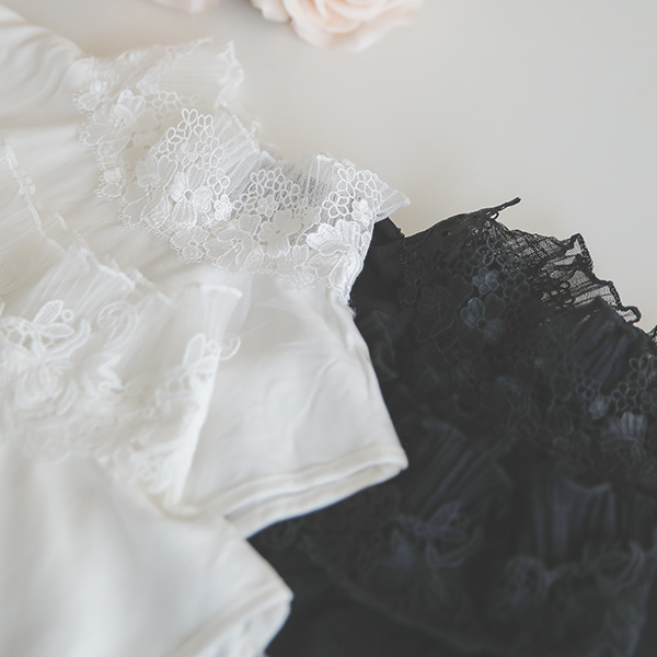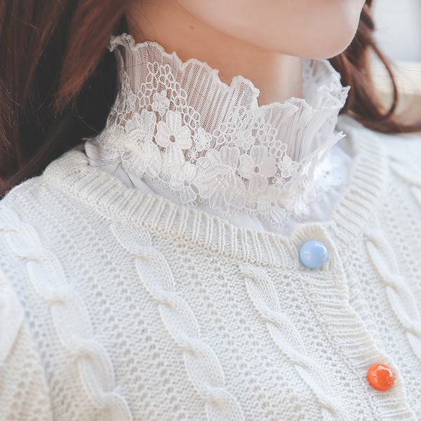 刺繍 レイス ハイネック カラー