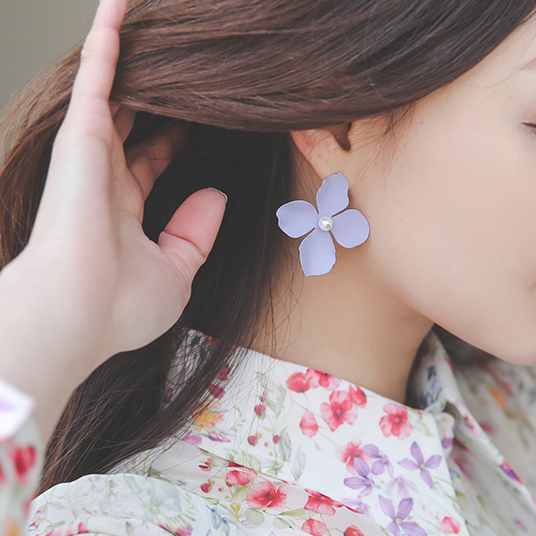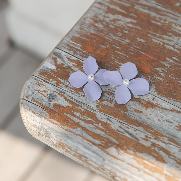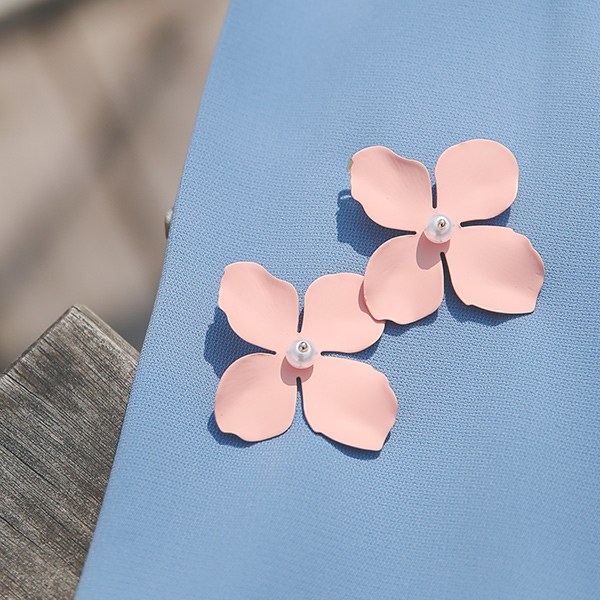 マット 花柄 真珠 イヤリング