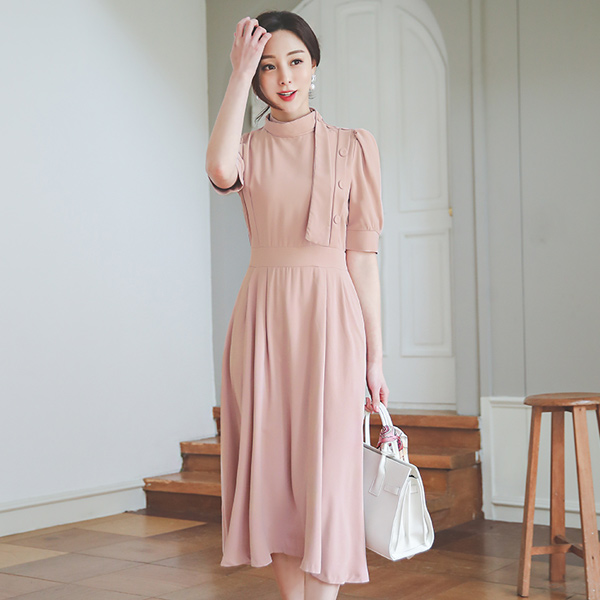 ハイネック スカーフ 逆様 プリーツ ワンピース