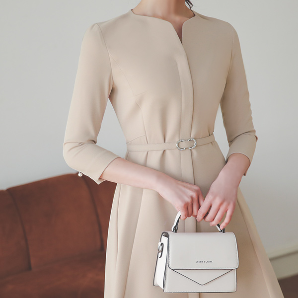 ハートネック ジッパー Aライン 切開 ワンピース