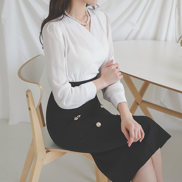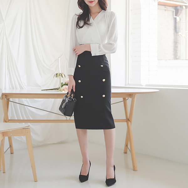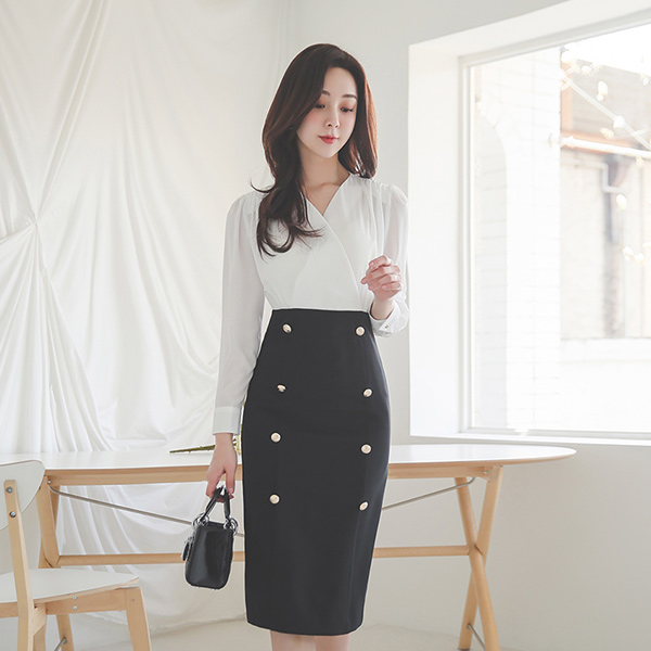 サープリス 配色 ダブル ゴールドボタン 弾力 ミディワンピース