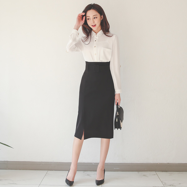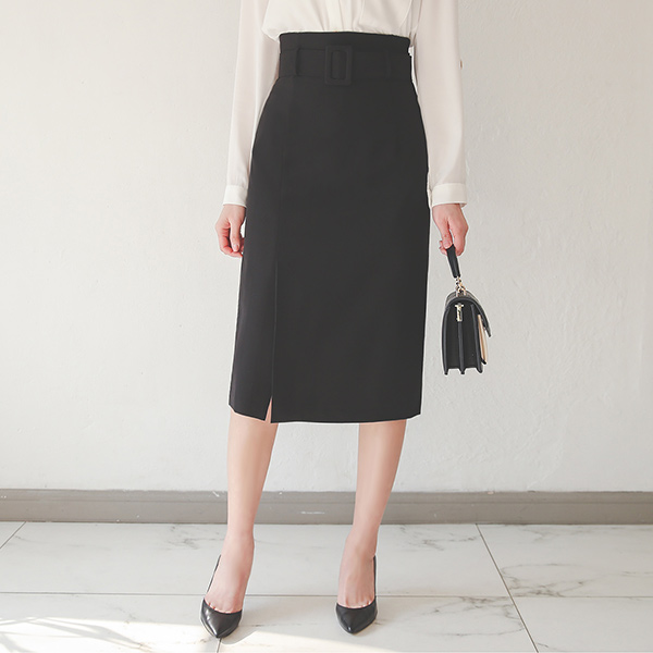 サイド スリット ベルティード 弾力 スカート