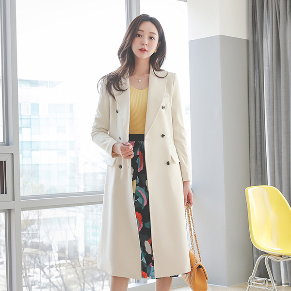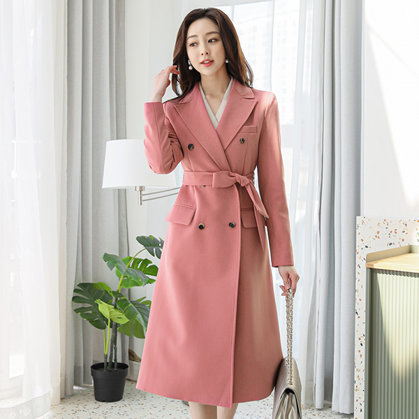 ステッチ ダブルボタン ベルティード Aライン ロング コート