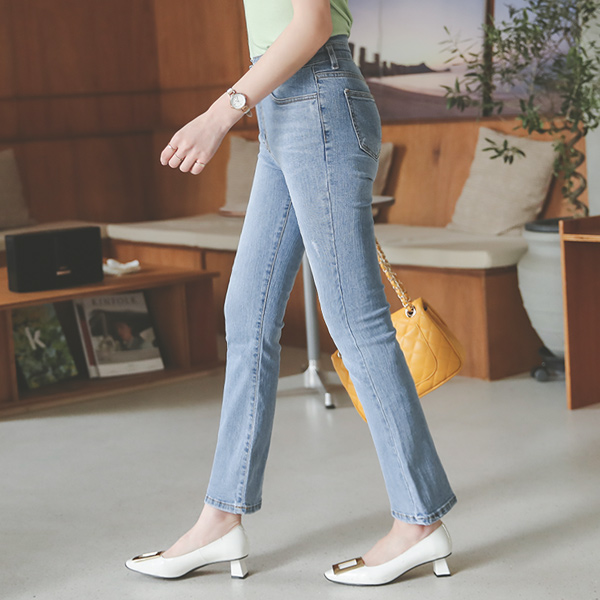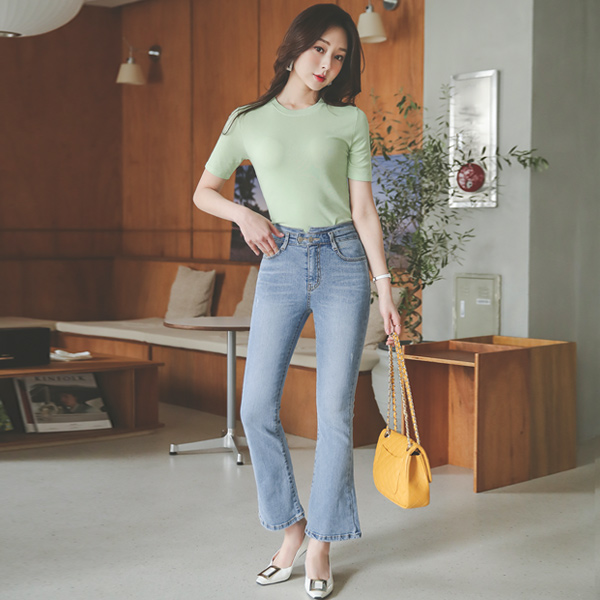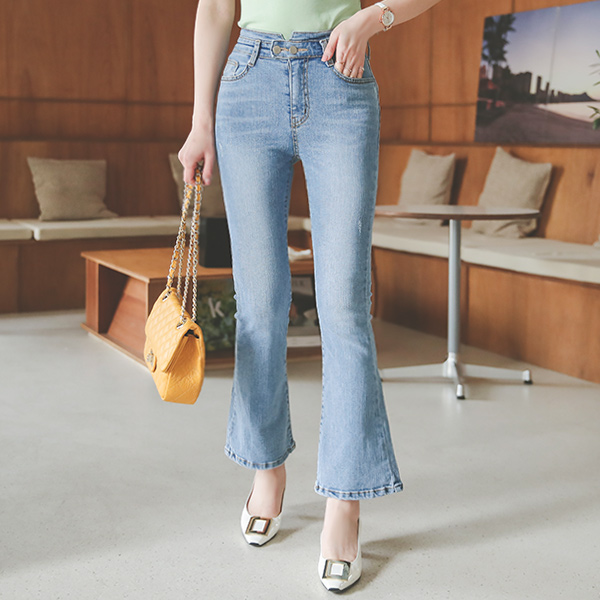 ユニーク ツーボタン ハイウエスト ブーツカット デニムパンツ