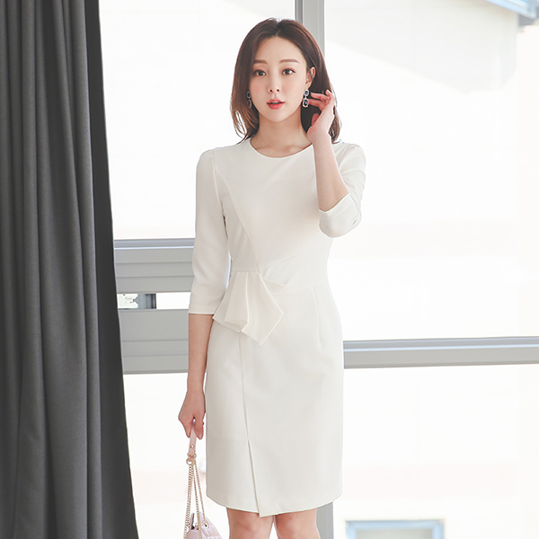 ピンチシャーリング アンバランス プリーツ 切開 弾力 ワンピース