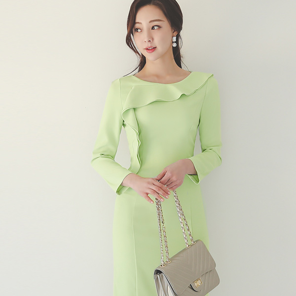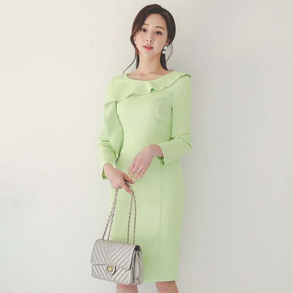 ラウンド アンバランス ラッフルライン 切開 スリム ワンピース