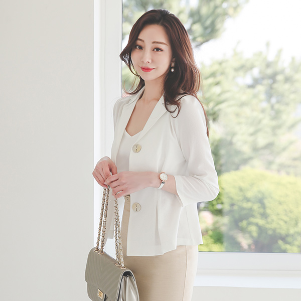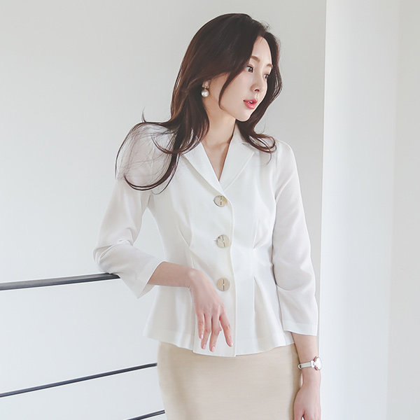 トリプル ウッドボタン ピンタック フレア ブラウス&ジャケット
