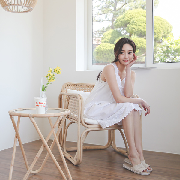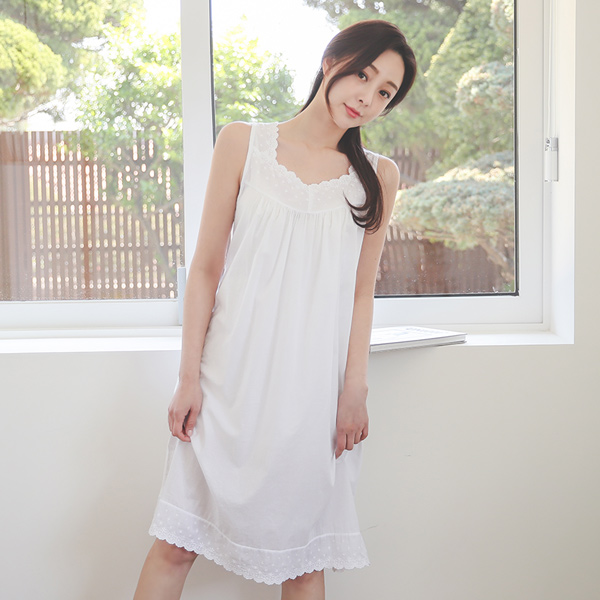コットン 刺繍 トリミング 袖なし 파자마 ワンピース