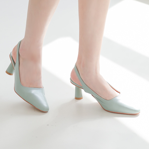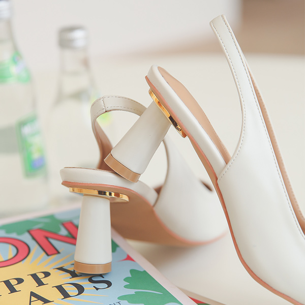 円筒踵 ゴールドバー装飾 スリングバック ヒール