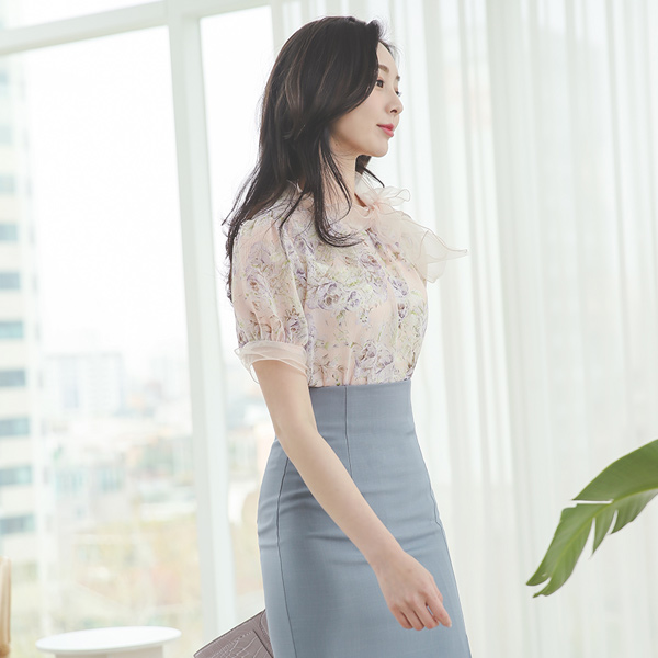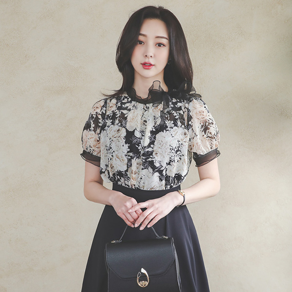 オーガンザ リボン シースルー 花柄 ブラウス