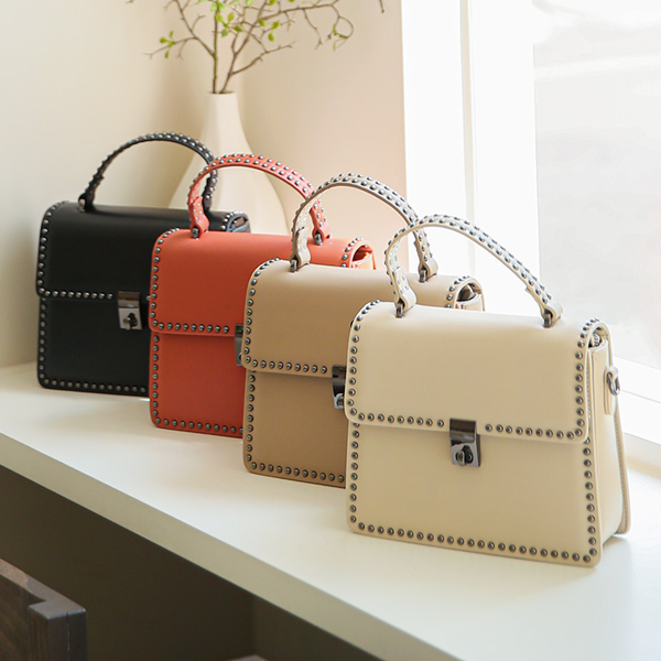 スクエア Silver スタッド トートバッグ