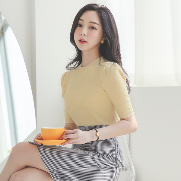 ワイド シボリ パフ 袖 ニットティーシャツ