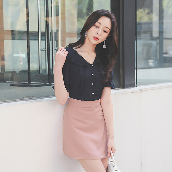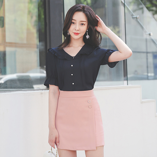 フリル ケープカラー ピンタック 真珠 ブラウス