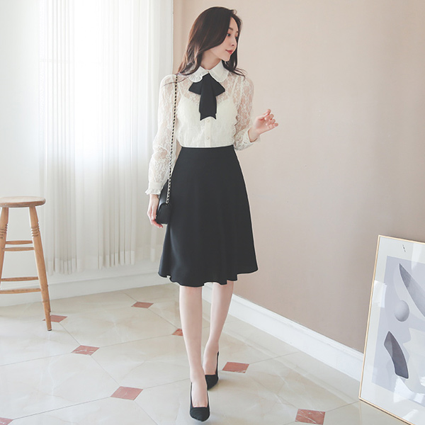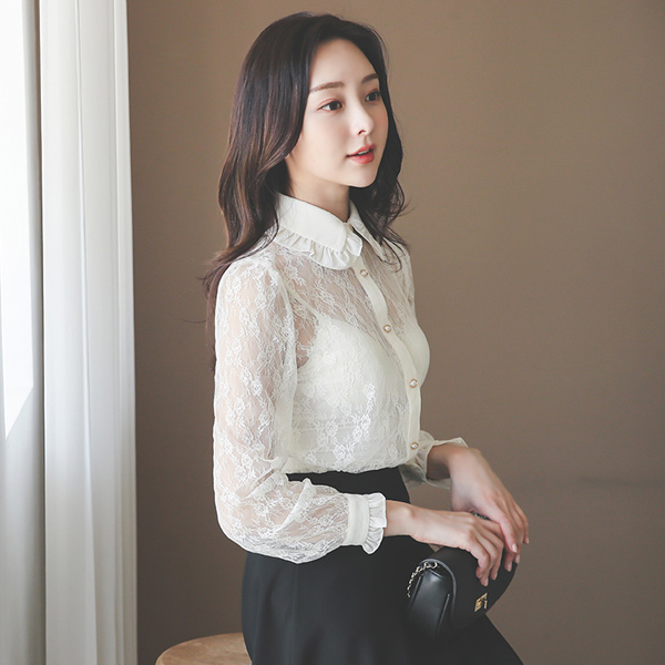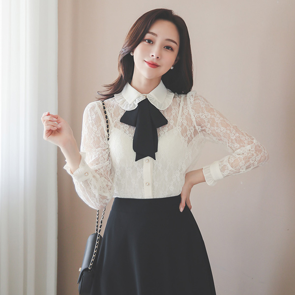 フリル カラー レイス リボン ブラウス