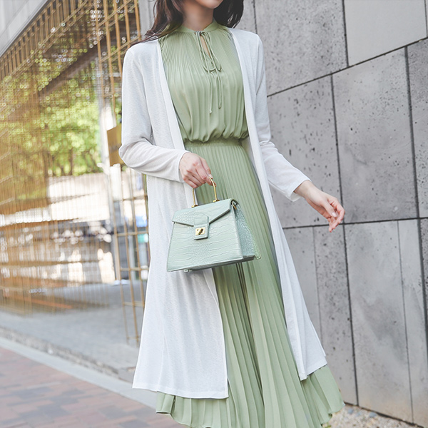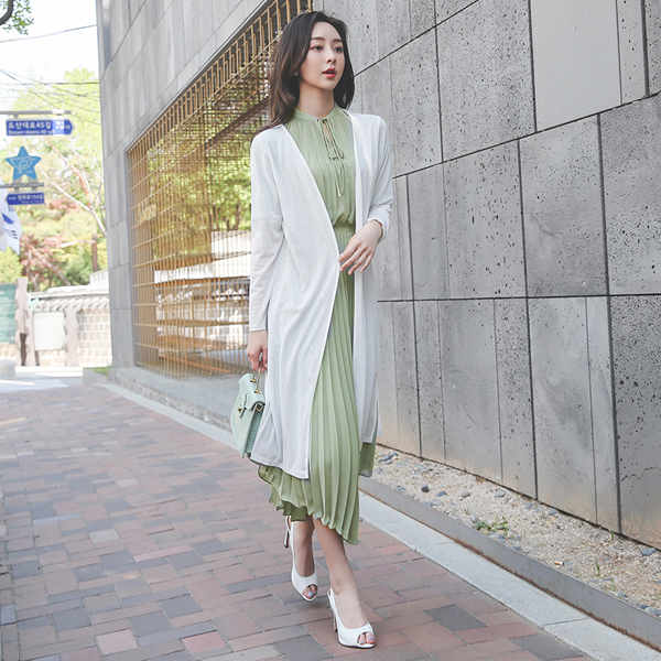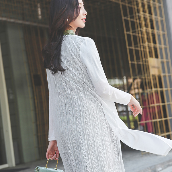 こうめん 刺繍 レイス 横線スリット ロング カーディガン