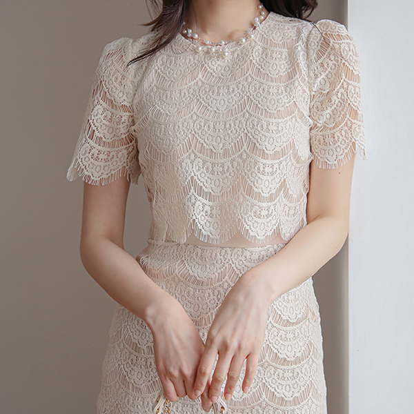 ウエーブ カッティング ショット&ロング レイス ワンピース