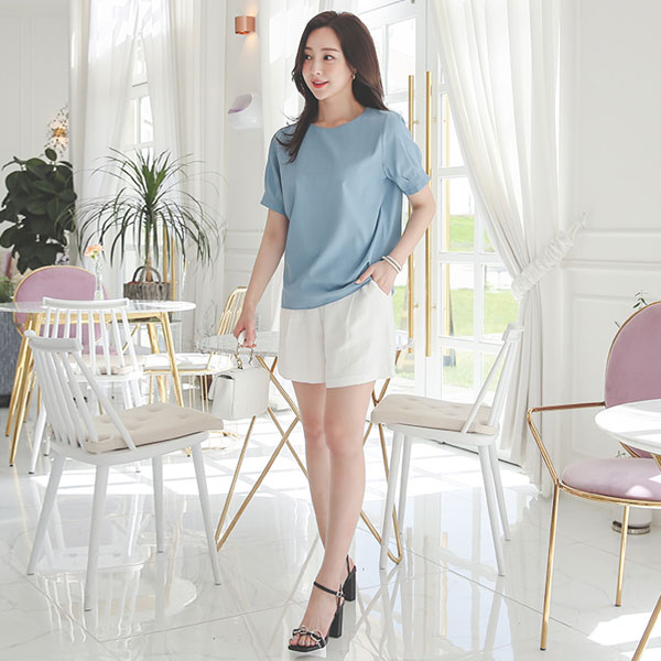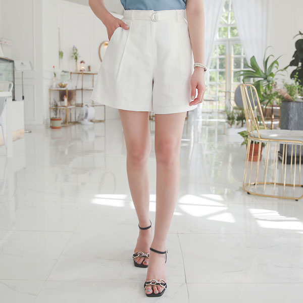 リングバックル リネン 後面バンド 5分팬츠