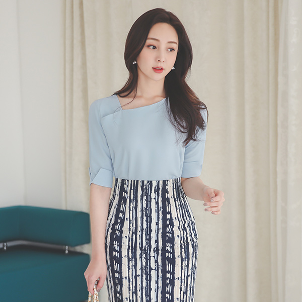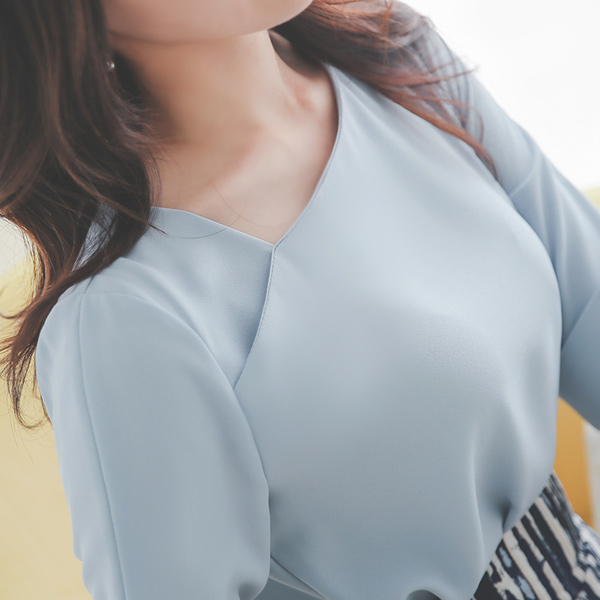 アンバランスネック 袖スリット ブラウス