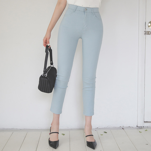 サマー ベーシック コットンスパンデックス Stretchy-Waist スリム ズボン