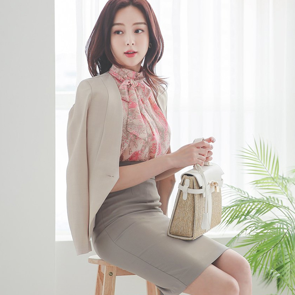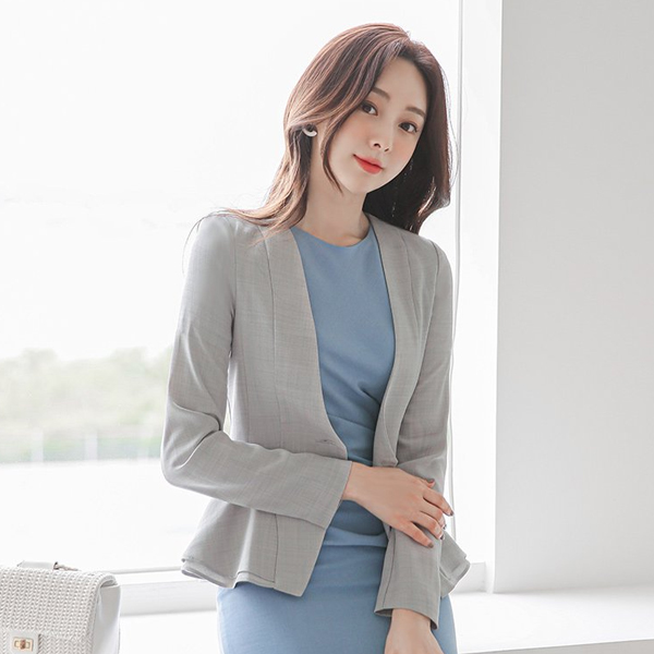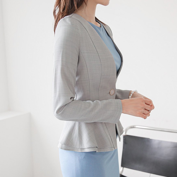 ウエーブ 二重 ペプラム ノーカラー スリム ジャケット Ⅱ