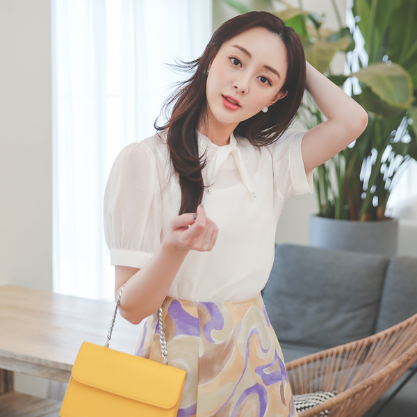 ソフト オーガンザ 真珠 スカーフ ブラウス