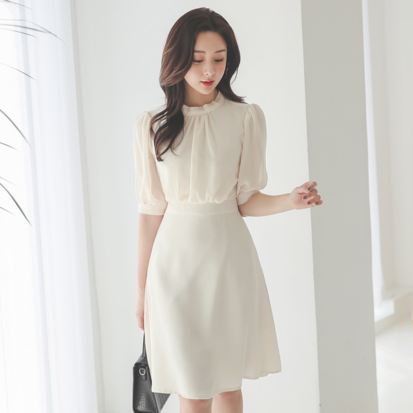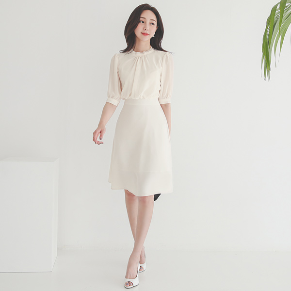 ハイネック シフォン フレア ワンピース