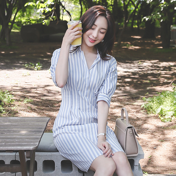 フルラインピンタック ストライプ シャツ ワンピースⅡ