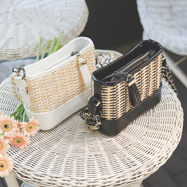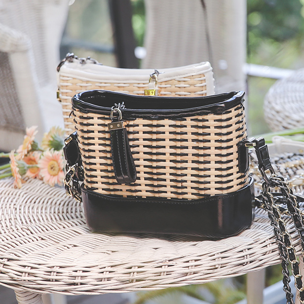ラタン レザー配色 チェーンかばん
