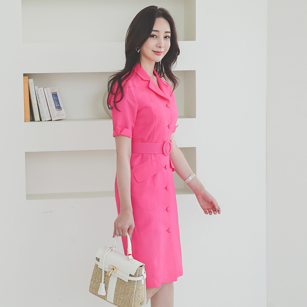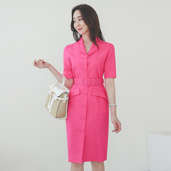 ビビッド リネン ポケット ベルティード シャツ ワンピース