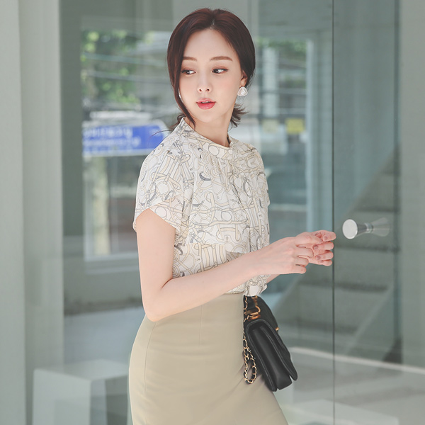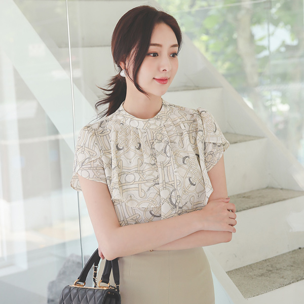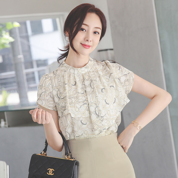 ラッフル ネックライン チューリップ 袖 チェーン ブラウス