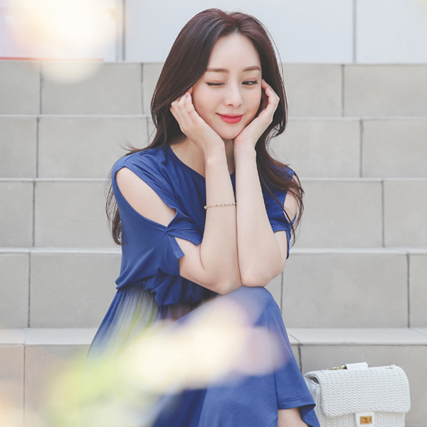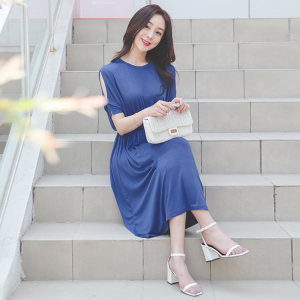 シルケット 袖 切開 バンディング フレア ワンピース