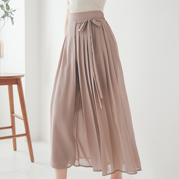 サイド リボン プリーツ シフォンラップ キュロット ズボン