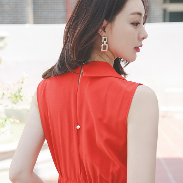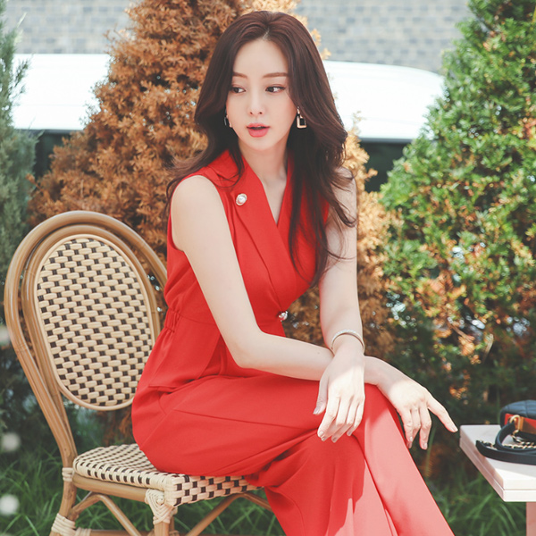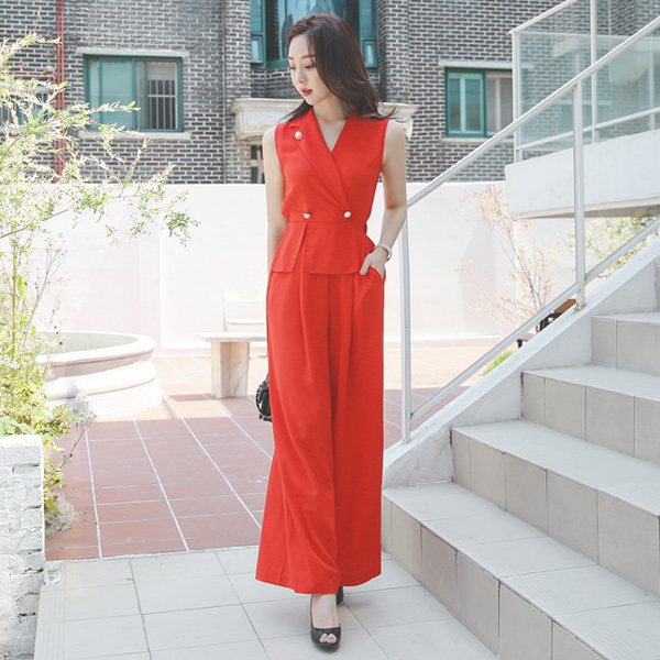 シングルカラー ダブルボタン ワイド ジャンプスーツ