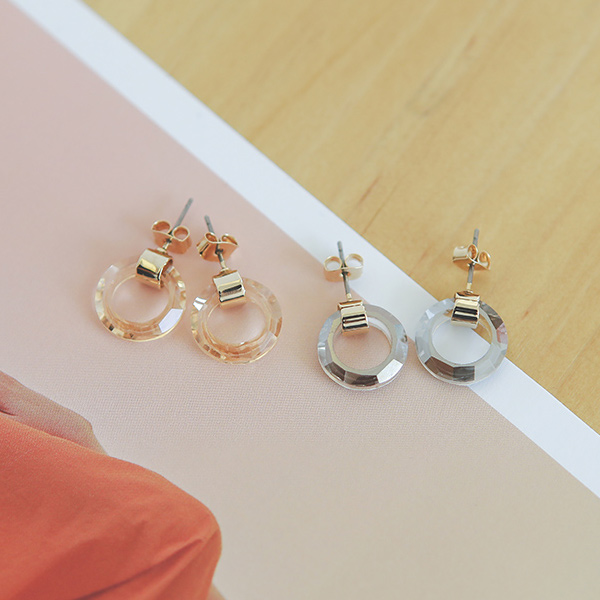 透明 ミニ ラウンド イヤリング
