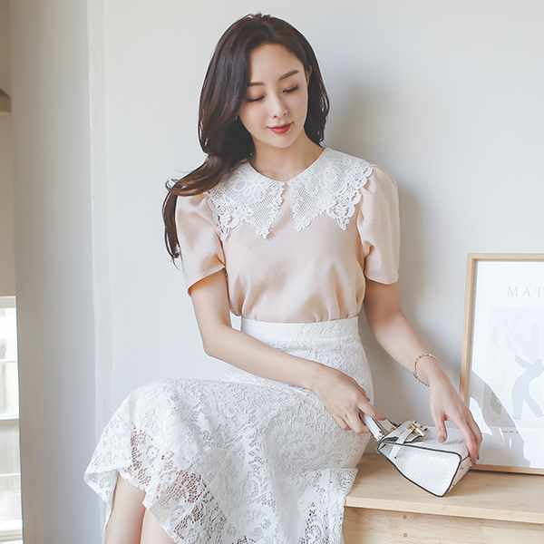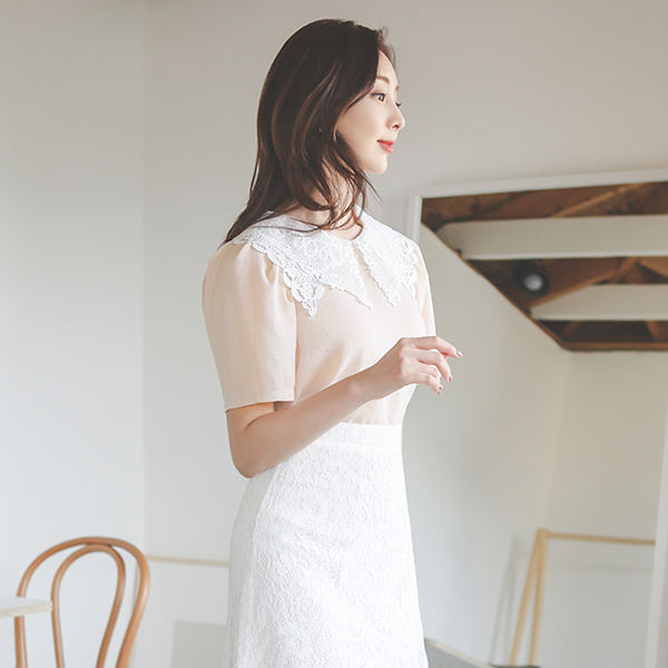 モチーフ 二重 レイス ビッグカラー ブラウス