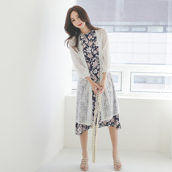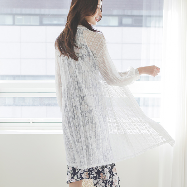 レイス ストライプ パフ袖 ロング カーディガン