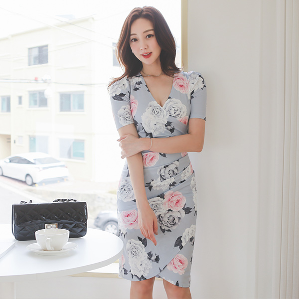 Roxy フローラル チューリップ シャーリングラップ 弾力 ワンピース