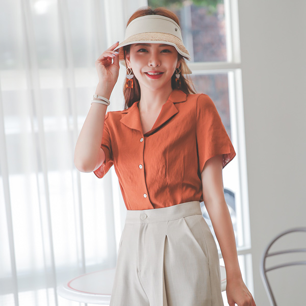螺鈿ボタン ピンタックライン カラー ブラウス
