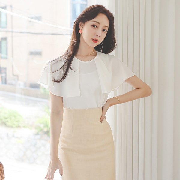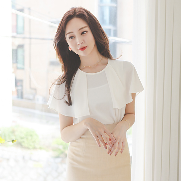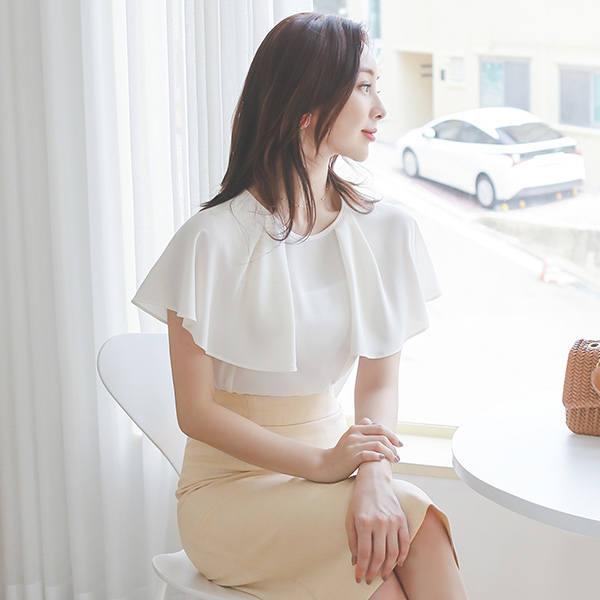 ケープ パピヨンスリープ シフォン ラウンド ブラウス
