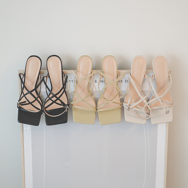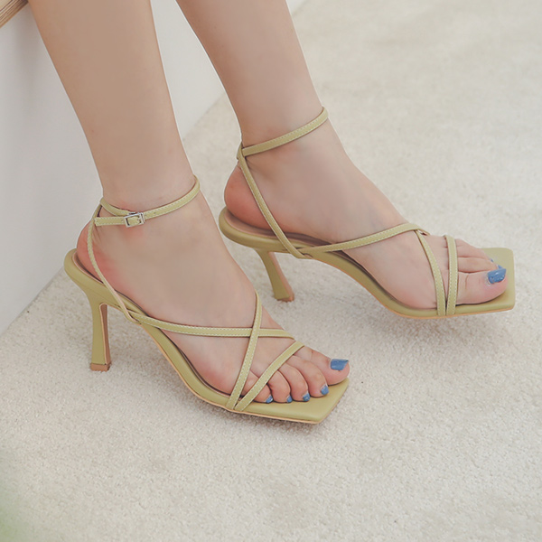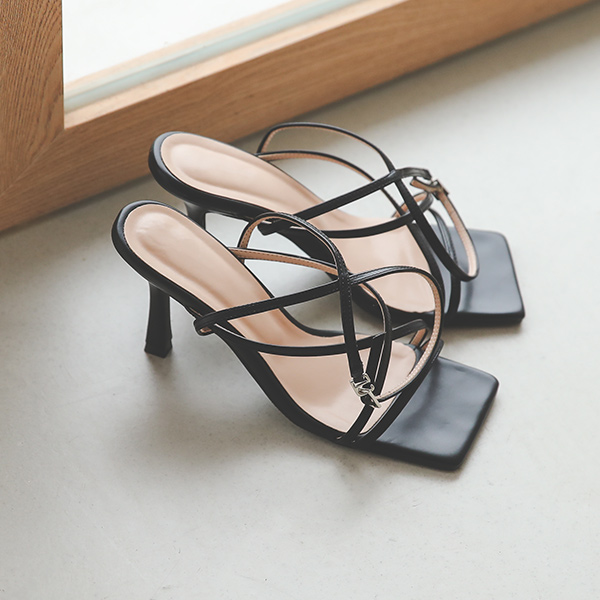 ムード スクエア クロス アンクル ストラップヒール