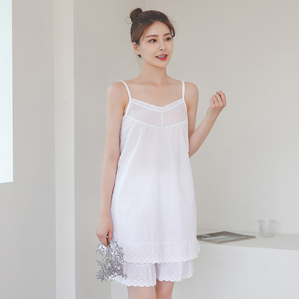 White パンチング レイス 袖なし パジャマ