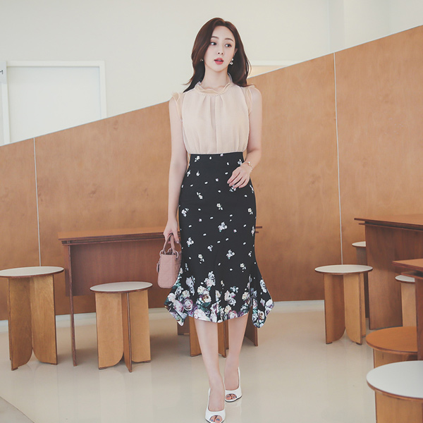 フローラ アンバランス 切開 ジャカード マーメイド スカート
