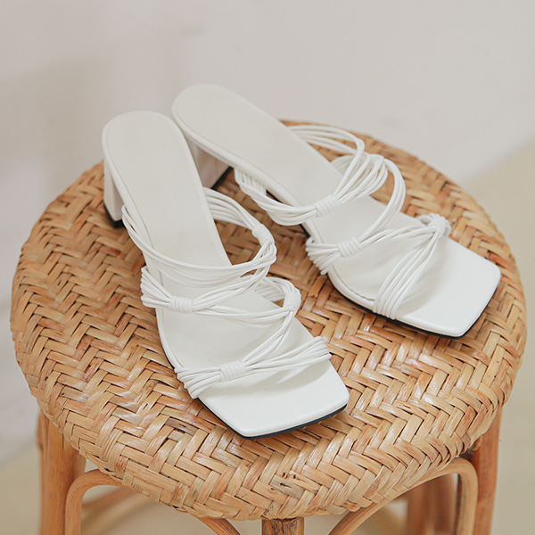 アンバランス サイド 縒り ストラップ ミドル ブロックヒール