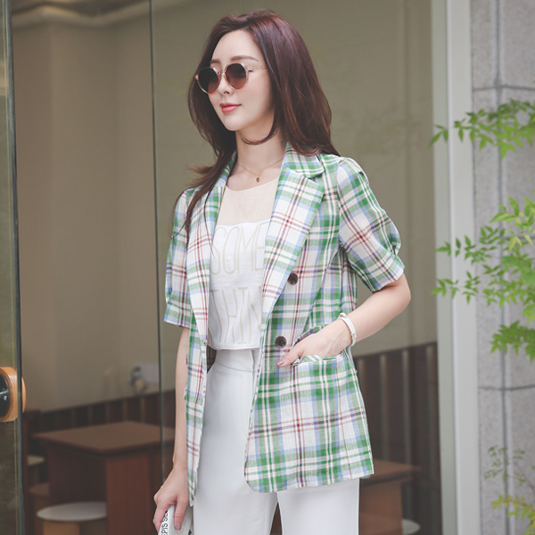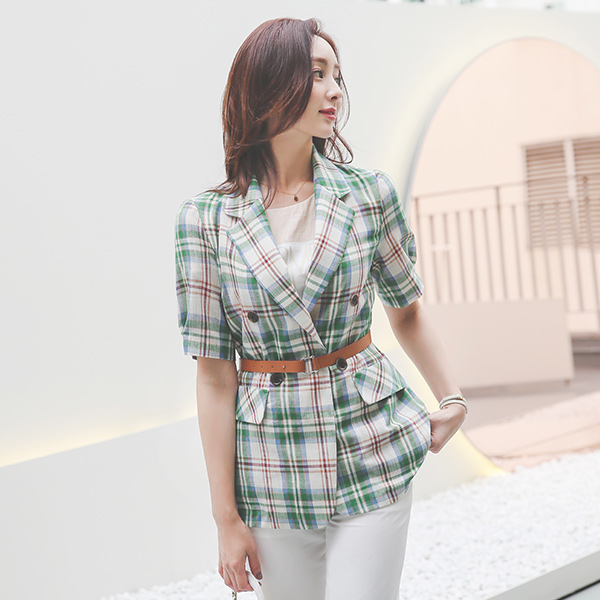 マドラス チェック ベルティード コットン ダブル ジャケット