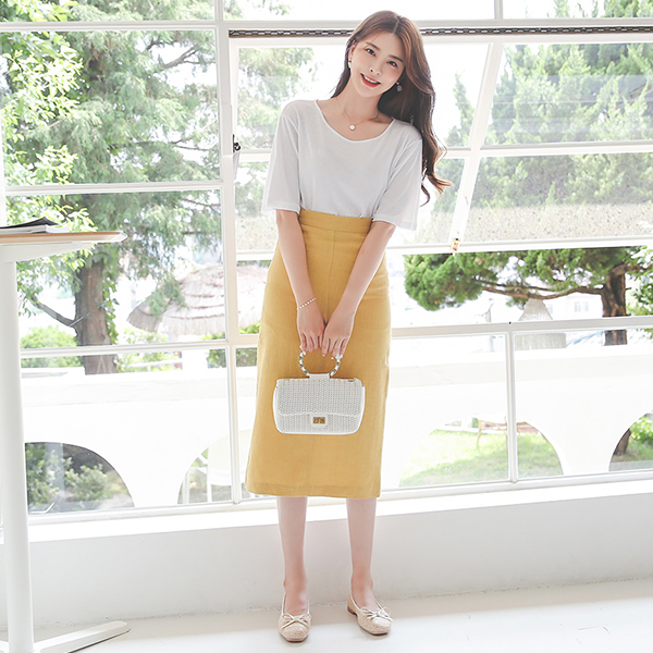 ビビッド リネン ハイウエスト 切開 ミディスカート